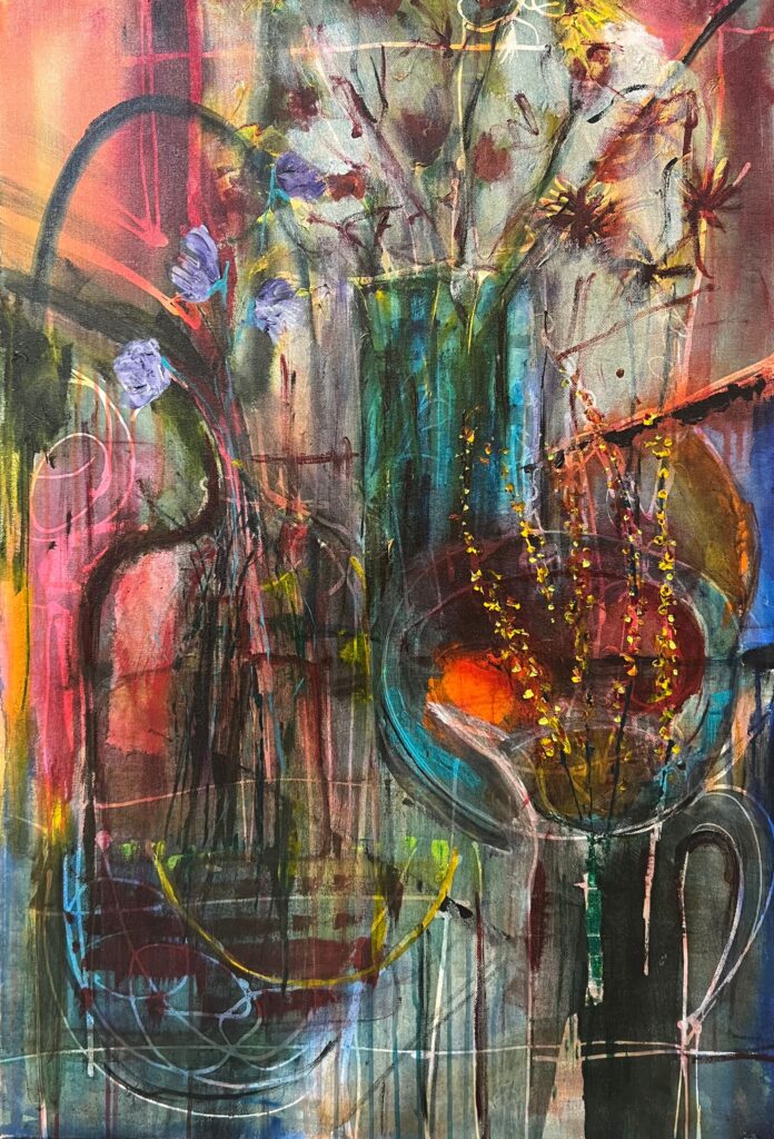 Reb Reid Scott is a London-based contemporary artist known for her imaginative and unconventional approach. Whilst her work spans painting drawing and textiles, all are alive with both vivid colour and energetic movement that capture the strength and fragility of both human and other organic forms. Reb succeeds in building layers that feel both spontaneous and deliberate. Each work is an exploration of emotion through mark-making — a visual record of energy, memory, and gesture – drawing on the artist’s own personal history.