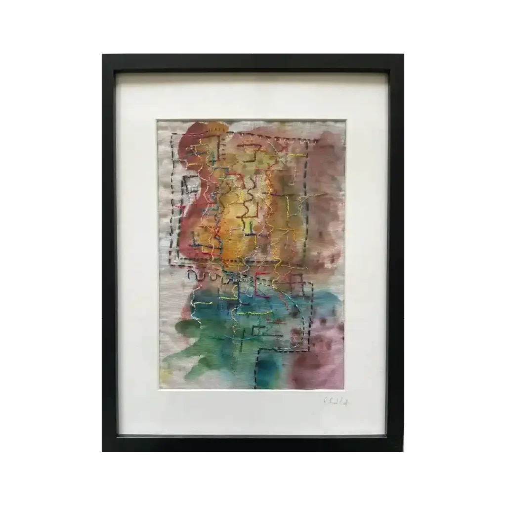 Watercolour and hand embroidery on muslin